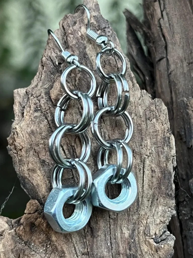 Diese Ohrringe sind was ganz besonderes. Sie werden von mir im keltischen Stil aus einzelnen Ringen "gewoben". Das nennt man auch "Kettenweben" aka "Chainmailing". Als kleines Extra sehen sie total chic & edgy mit der Mutter aus!