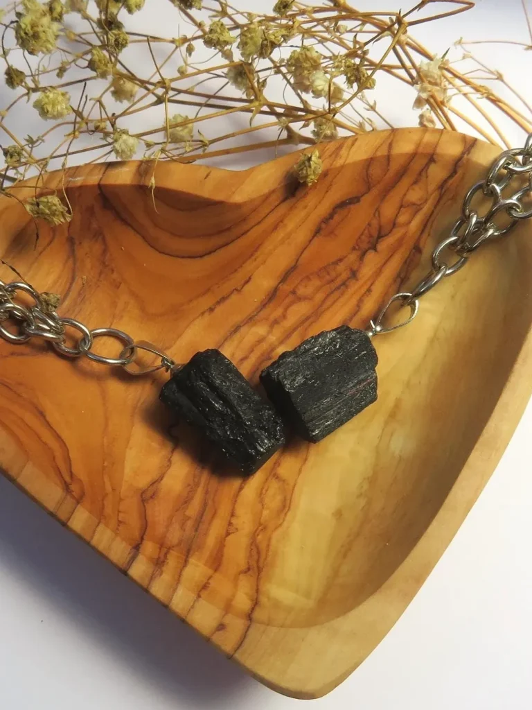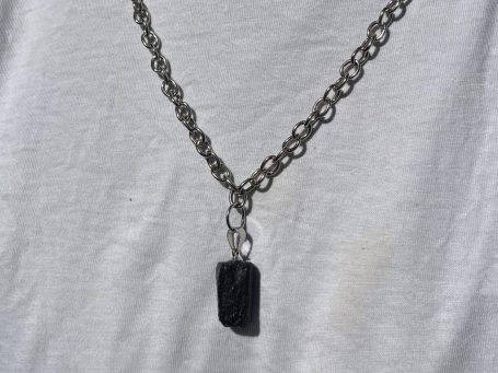Schwarze Turmalinkette mit Karabiner